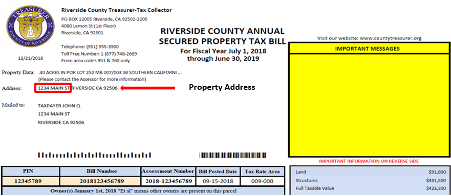 Riverside County Assessor County Clerk Recorder Regular Property Tax Bills